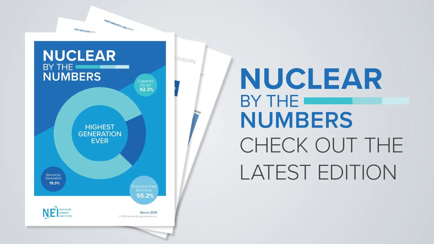 Nuclear by the Numbers is an annual data report on all things nuclear energy including advantages, performance data, and the outlook of the industry. A promotional graphic was created to accompany the report.